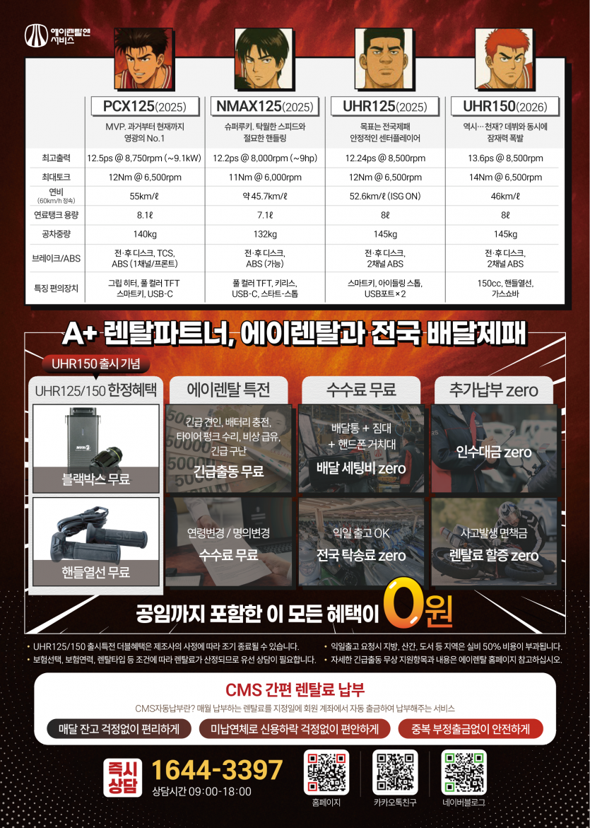 특히 UHR150 출시를 기념하여 UHR125/150 2개 기종에 한하여 블랙박스 및 핸들열선이 무상 장착됩니다.